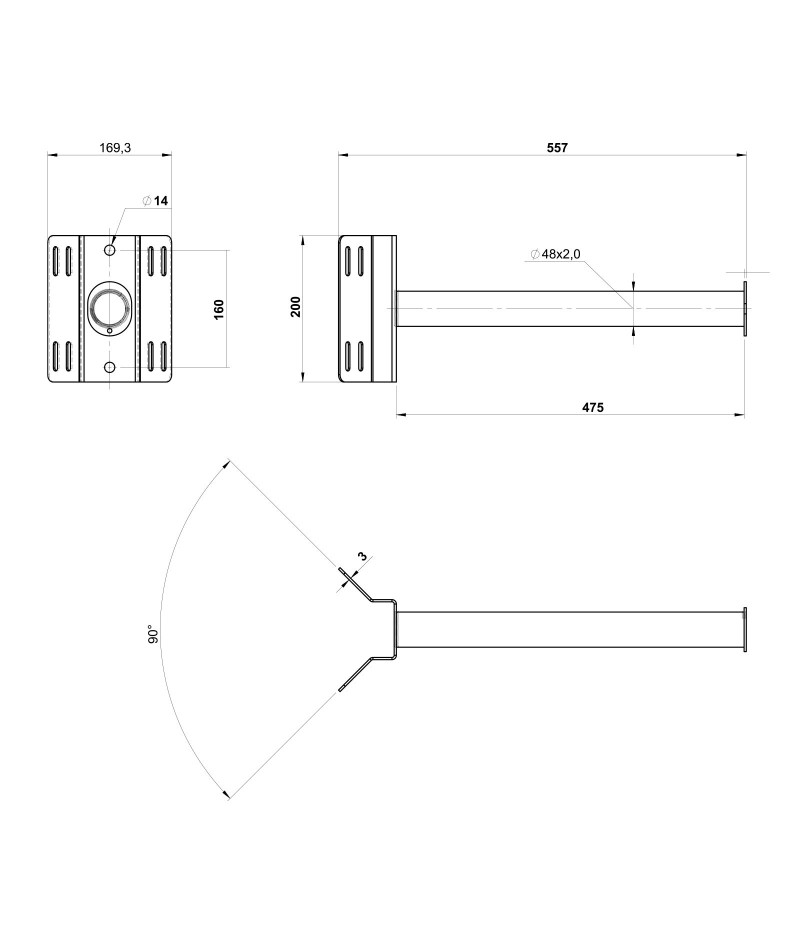 Support pour projecteurs à fixer sur poteaux ou arbres, avec barre horizontale de 47 cm (Ø 48 mm)