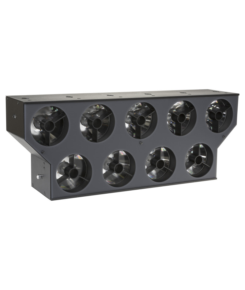 - Les 9 grosses lentilles sont chacune équipées de LED 60W blanc froid/blanc chaud qui produisent un faisceau blanc de 4° et très puissant. (pleine puissance : 175 000 lux à 3 m)