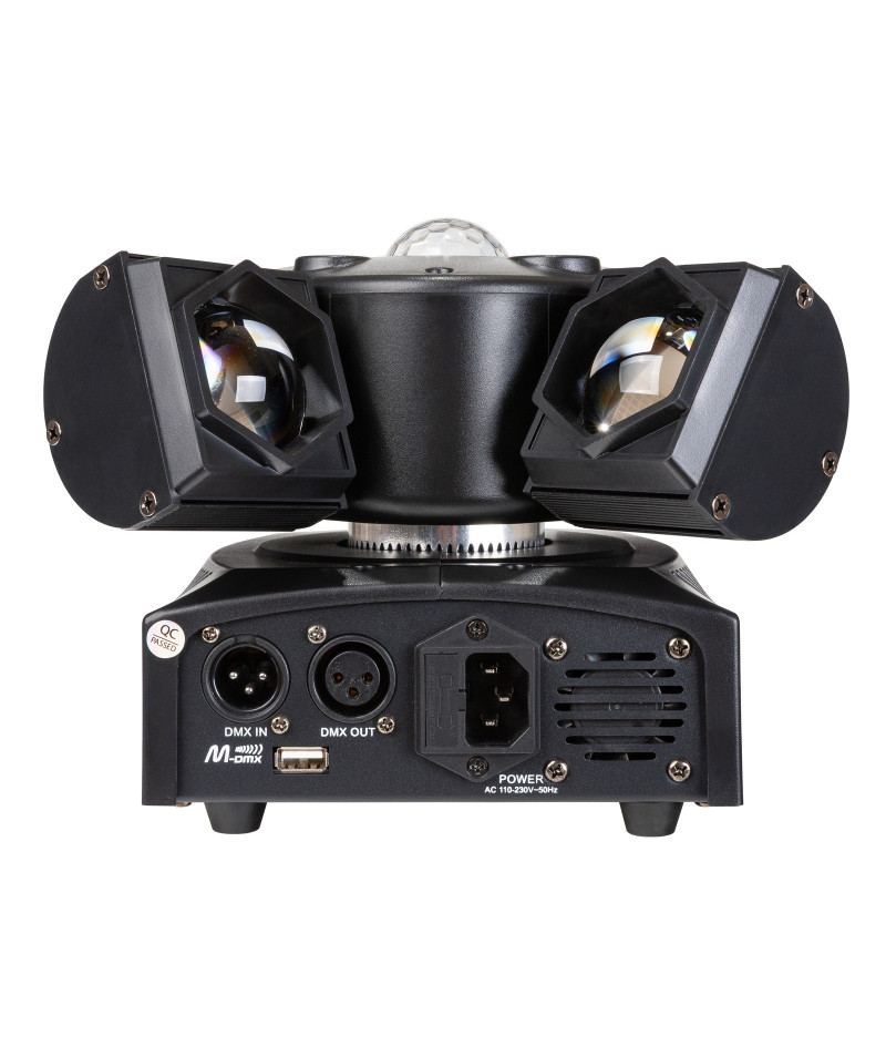 Effet multi-lumière compact avec 4 sources lumineuses différentes, lasers et stroboscopes pour DJ, pubs et fêtes. Contrôle DMX complet, programmes intégrés et installation facile. Plusieurs modes de fonctionnement dont maître/esclave et télécommande IR