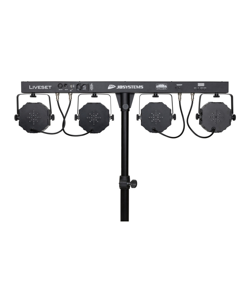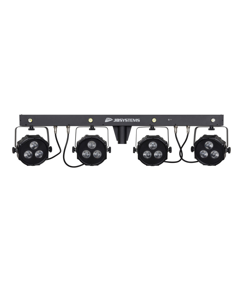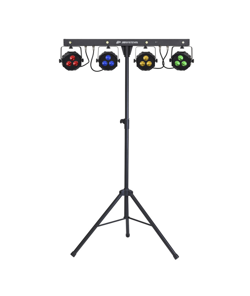 • Inclus : 4BAR compact (4 projecteurs LED RGB + 4 stroboscopes blancs), pédale sans fil, stand télescopique, 2 sacs de transport