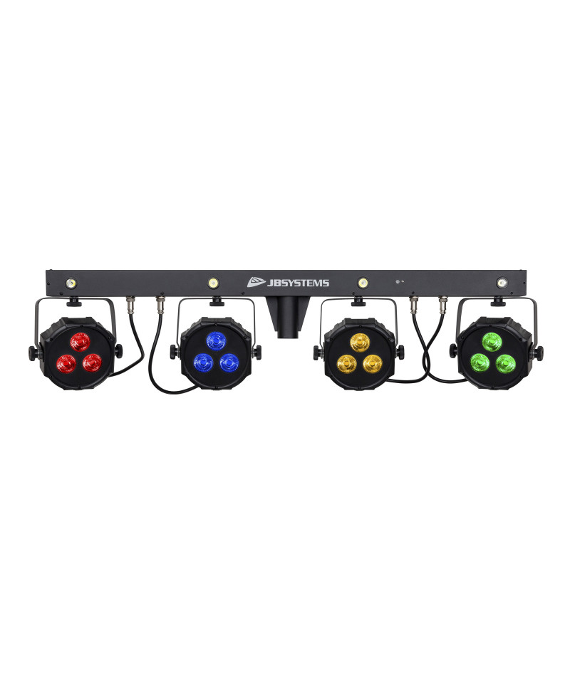 Un jeu de lumière complet prêt à l’emploi pour tous vos événements et fêtes: un 4BAR compact, pédale de commande sans fil, pied télescopique et sac de transport