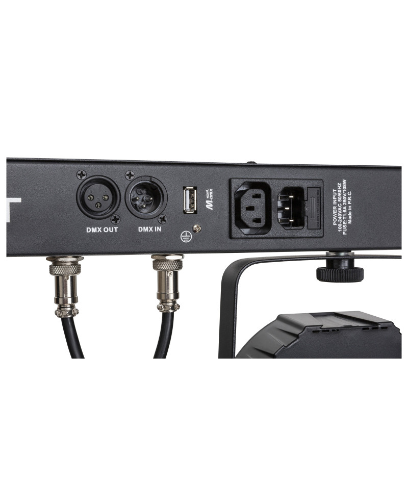 • Programmes intégrés, affichage LED, connexion USB pour dongle DMX sans fil (option)