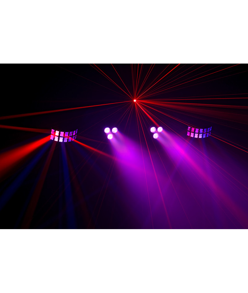 Le Florida Bar II est le système lumière 4-en-1 idéal pour animer toute soirée ou prestation en toute simplicité grâce aux différents modules embarqués. Les 2 PAR LED RGB composés de 6 LED 3-en-1 de 9W chacune assurent un éclairage puissant et bien contrasté avec un angle de diffusion de 15°, tandis que les deux projecteurs d'effets LED Derby et leurs impressionnantes faisceaux de lumière en mouvement mettront l'ambiance sur toutes vos prestations. Pour compléter son arsenal, le Florida Bar II embarque un Laser rouge/vert très efficace et un stroboscope percutant basé sur 4 LED blanches de 1W.