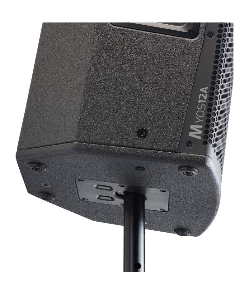 | Construction | 4 tampons caoutchouc dessous, Caisse renforcée en multiplis de 15mm, Forme asymétrique avec pans coupés pour position de retour, Grille métallique intégrale, LED Power/Clip en façade, Peinture Polyurea texturée anti-scratch |