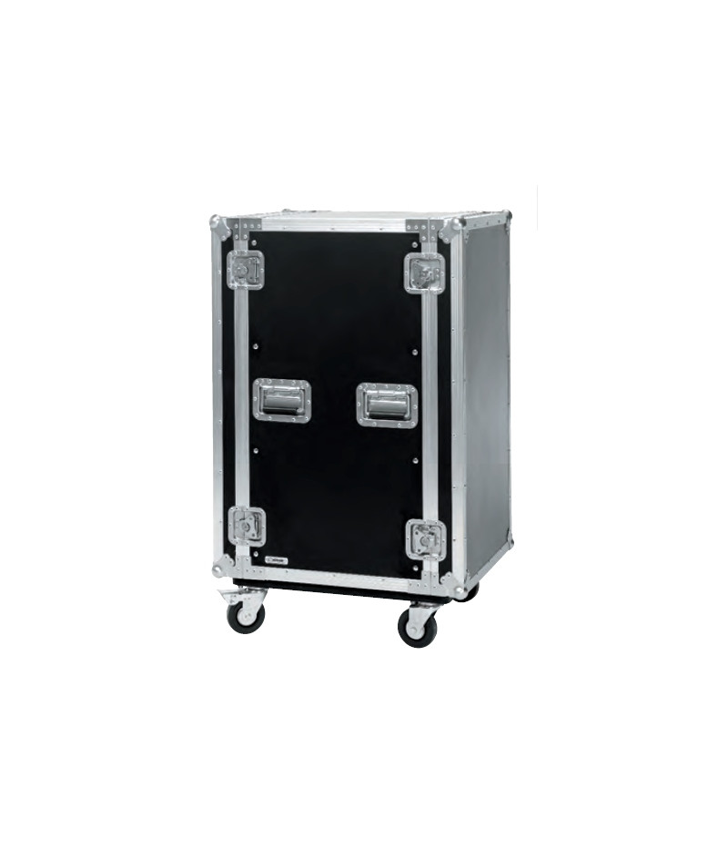 • Les modèles de 12 à 20 U sont équipés de 4 roulettes Ø 100 mm dont 2 avec frein. Le Flight case de 18 U (livré avec 2 rails de montage inclinables) a la particularité de pouvoir recevoir des appareils 19" posés sur le dessus comme une table de mixage par exemple.