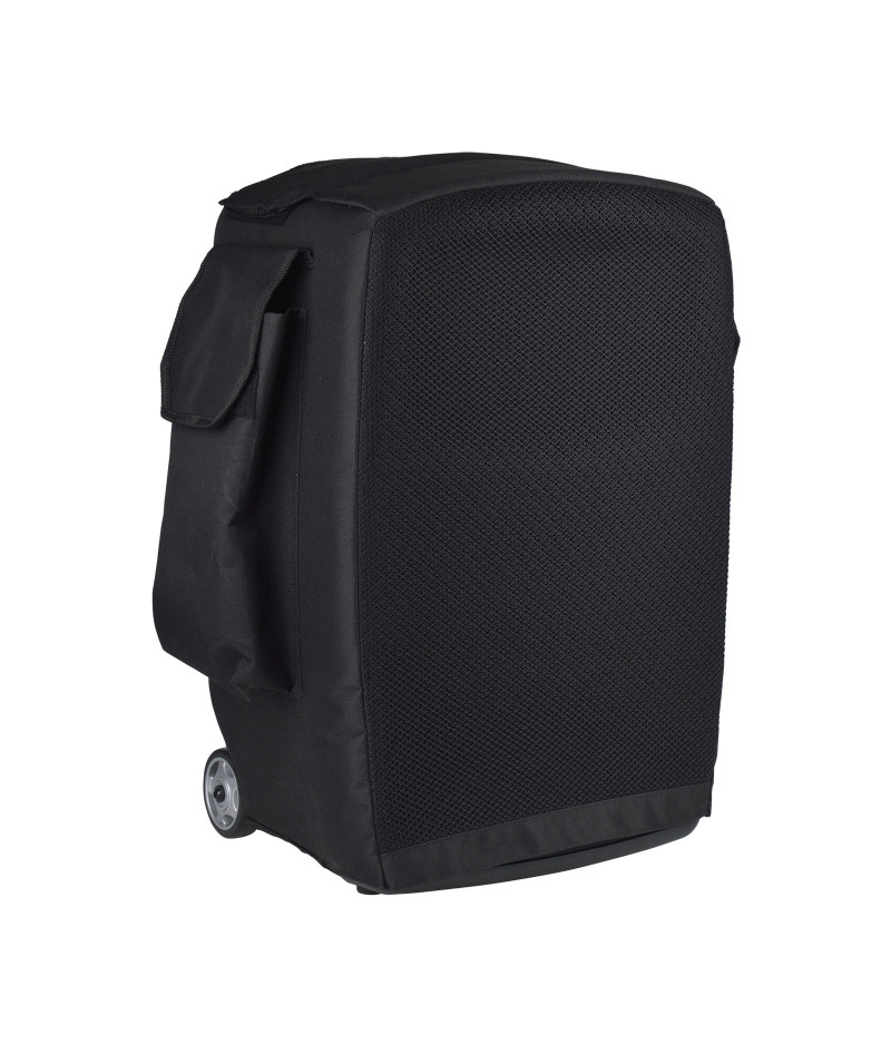 L’enceinte peut être utilisée avec sa housse grâce aux ouvertures à l’arrière et à la mousse acoustique en façade