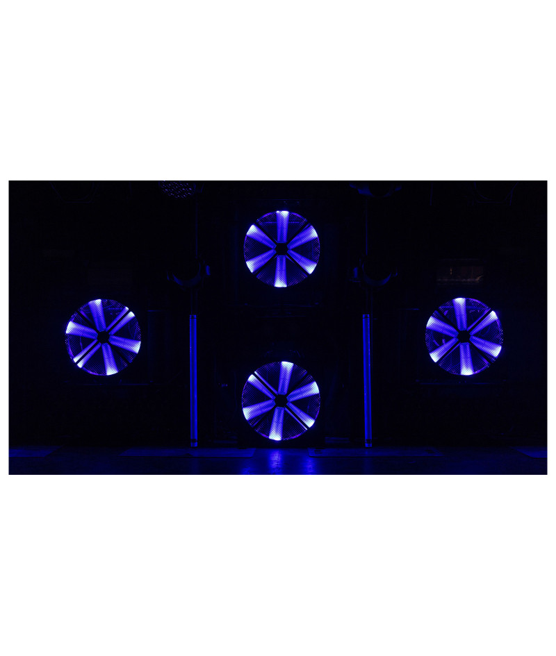 Le BT-LEDROTOR est un ventilateur de 70x70cm à effet LED de haute puissance pour les studios TV, la location, … . Chacune des 6 pales est équipée de 5 sections à LED RVB que vous pouvez contrôler individuellement. En supplément un effet LED UV a été ajoutée.