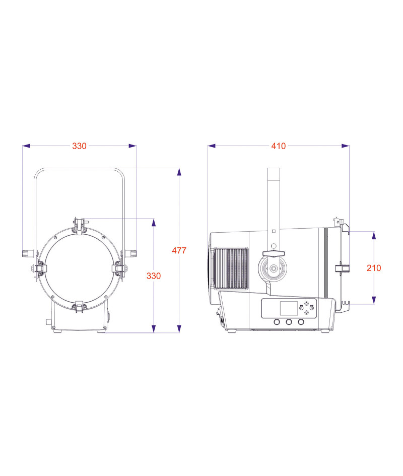 - Projecteur Fresnel à LEDs multicolores de 400 W, conçu pour les applications théâtrales professionnelles