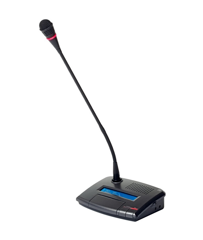• Chaque pupitre possède un écran LCD ergonomique, son propre haut-parleur, une prise sortie pour casque d’écoute, un réglage de volume, 5 touches et leds pour la fonction vote et une détection de défaut de cablâge