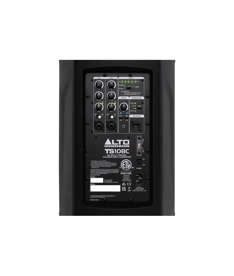 La TS108C ne se contente pas d’être puissante : elle est aussi ultra-connectée. Diffusez vos playlists directement depuis un smartphone ou une tablette grâce au Bluetooth intégré. Pour une immersion totale, associez deux enceintes via la fonction Bluetooth TWS et profitez d’un son stéréo sans câbles. L’application Alto Pro vous offre un contrôle complet à distance : ajustez le volume, changez de mode DSP ou peaufinez l’égalisation, le tout depuis la salle ou la scène, sans jamais interrompre votre performance.